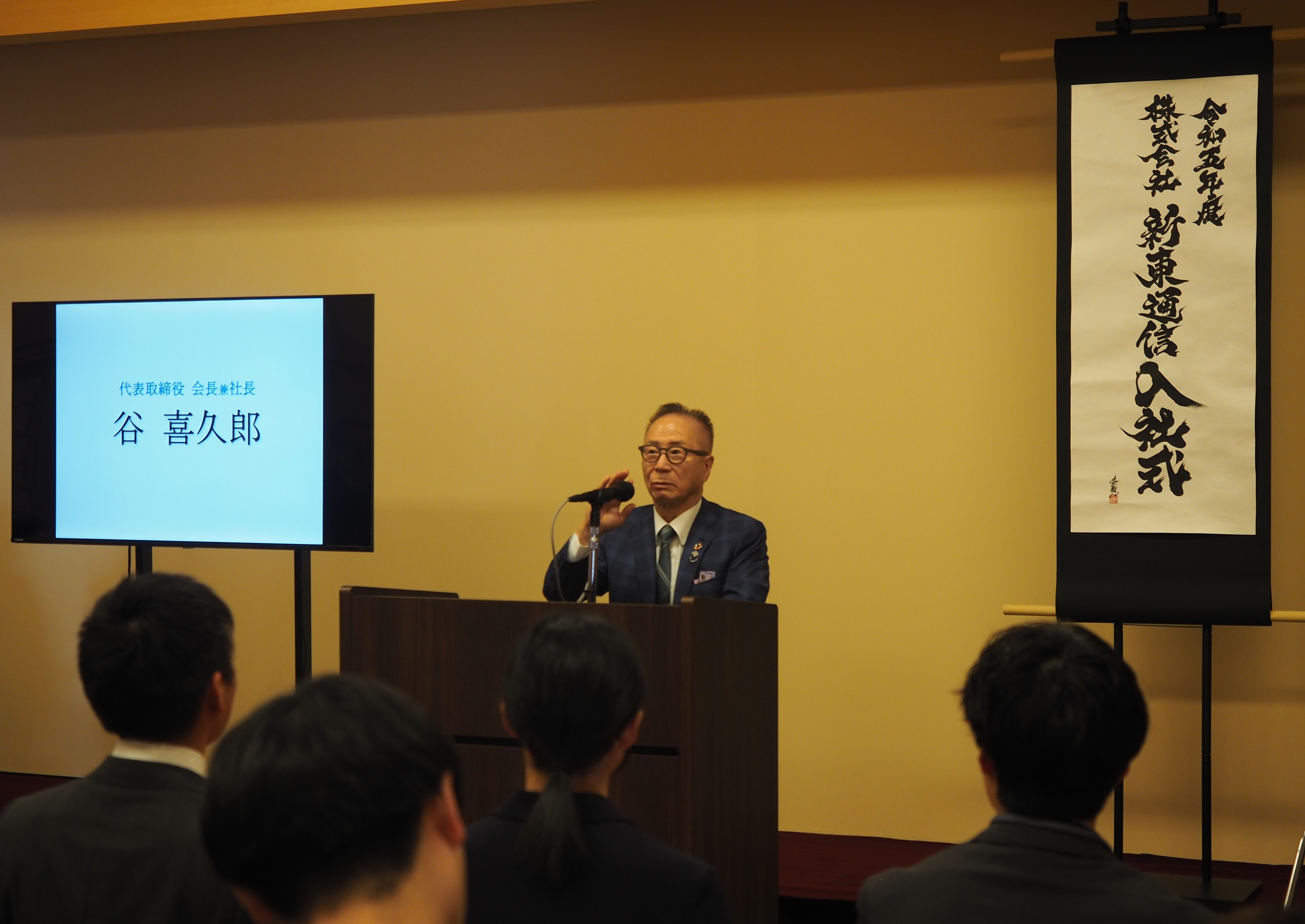 谷代表取締役会長兼社長から歓迎と激励の言葉