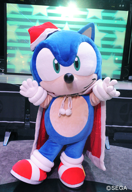 メインステージ前で、ソニックがサンタの衣裳で登場するグリーティングを行います。