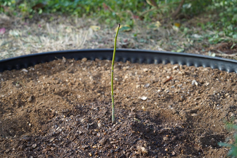 アオギリの苗は高さ20センチほど。落葉樹のため、冬の時期は葉がありません