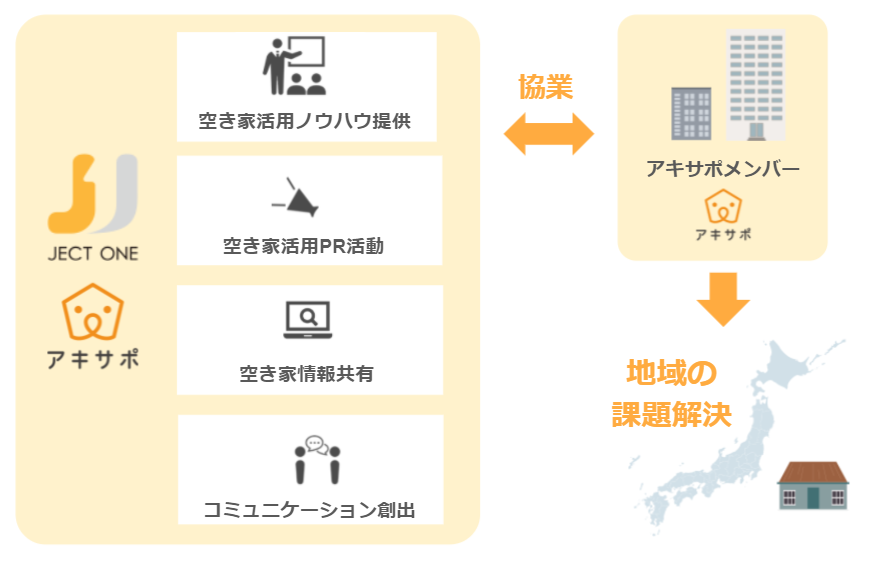 「アキサポネット」は、当社の空き家活用事業「アキサポ」にご賛同いただいた全国各地の不動産会社や工務店などの空き家活用事業者とライセンス契約を結び、アキサポネットメンバーとして提携いたします。「アキサポ」の事業スキームと、アキサポネットメンバーが持つ地域性を活かした専門的な知識を掛け合わせることで、空き家活用の多様性を高め、より地域に合った空き家活用のご提案が充実することを期待しております。