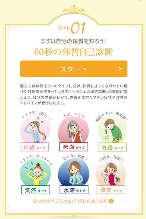 公式オンラインショップの人気No.1コンテンツは「クラシエの漢方体質自己診断」です。