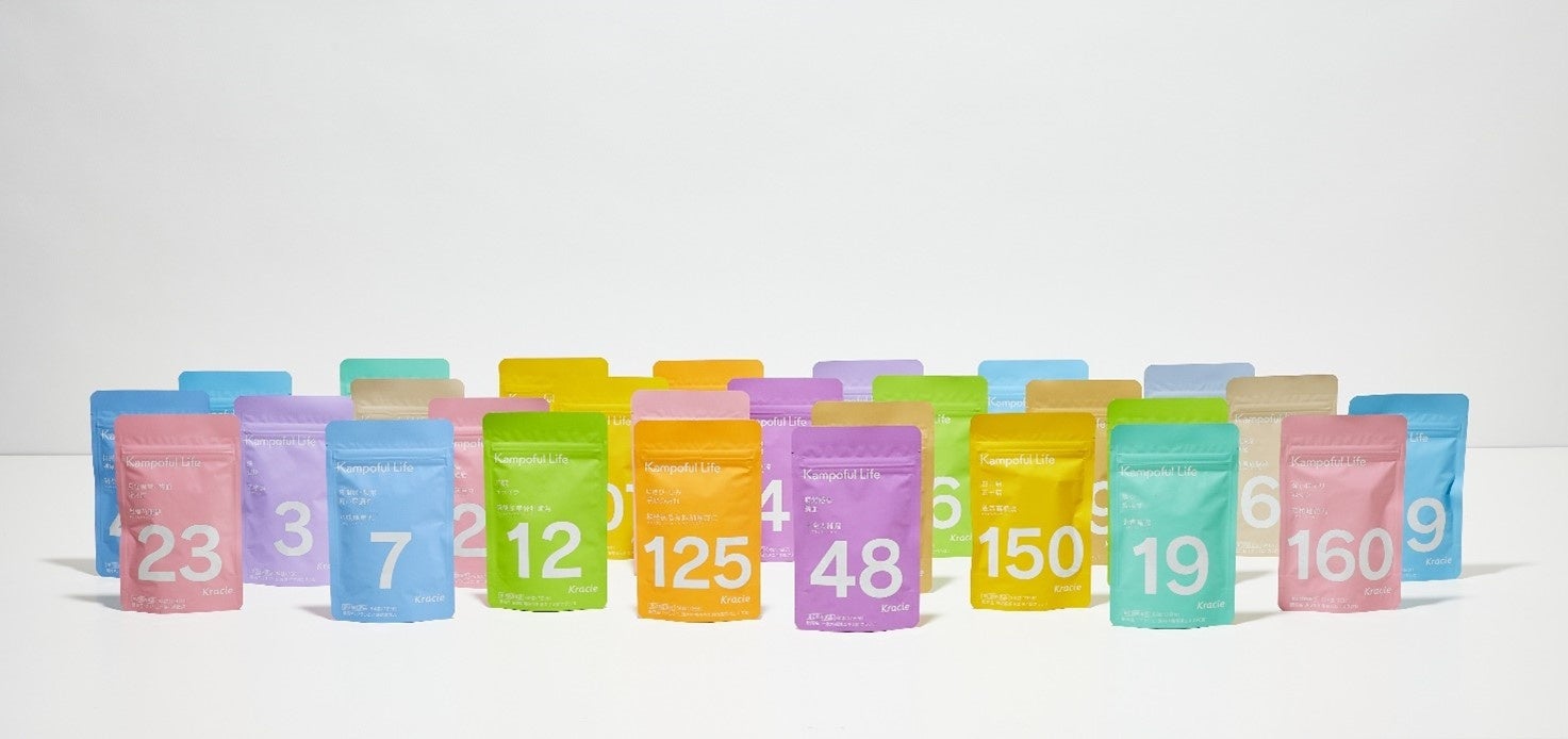 公式オンラインショップでは、オリジナル商品「Kampofullifeシリーズ」を取り扱っております。店頭に並ぶ商品と異なり、パッケージから広告的な表現を排除し、持ち運び易いパウチ形状や見た目のポップさにもこだわりました。風邪、肥満、女性の悩み、ストレスなど、体調にあわせてストックしていても番号および色分けがされていて判別しやすいものとなっております。