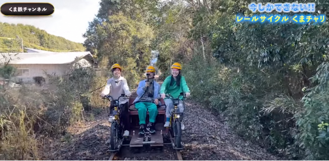 くま川鉄道株式会社(本社:熊本県人吉市)は、令和2年7月豪雨で大きな被害を受け、全線での運転再開に向けて取り組んでいます。そのような中、全線復旧までの間、専用のマウンテンバイク2台で線路上を走るレールサイクル「くまチャリ」のサービスを2021年5月から開始しました。「くまチャリ」は、現役の鉄道の線路をマウンテンバイクで走ることができる、今しかできない、期間限定アクティビティです。
