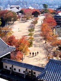 ロープウェイ・リフトを使って、紅葉の景色を楽しめます。市中心部にそびえ立つ松山城。加藤嘉明が慶長7年(1602年)から約25年の歳月をかけた、築城400年を超えた松山城は攻守の機能にすぐれた連立式天守をかまえた平山城といわれています。
