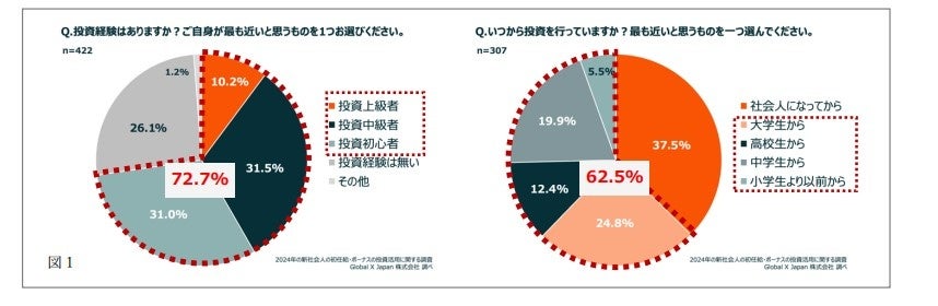 日本で唯一のETF専門資産運用会社であるGlobal X Japan 株式会社(東京都千代田区、代表取締役社長 姜 昇浩)は、2024年4月に新卒(大学卒・大学院卒)で就職した全国20代の新社会人男女422名を対象に、投資経験と初任給・ボーナスの活用に関する調査を行いました。