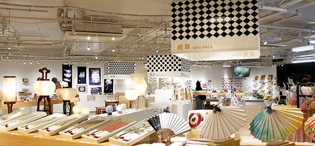 県産品を通じて岐阜県の魅力を発信するお店「THE GIFTS SHOP」には、岐阜県の伝統文化をはじめ、地域の名産品を県内各地から集め、商品とともに作り手の想いや物語を届けます。岐阜県各地の酒蔵が醸す銘酒をはじめ、関の刃物、美濃焼、美濃和紙など、岐阜県の名産品がそろっています。