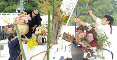 ◇概要: 天下分け目の関ケ原合戦にちなんで、全国の華道家達が東西に分かれ、即興による生け花の戦いを実施します。