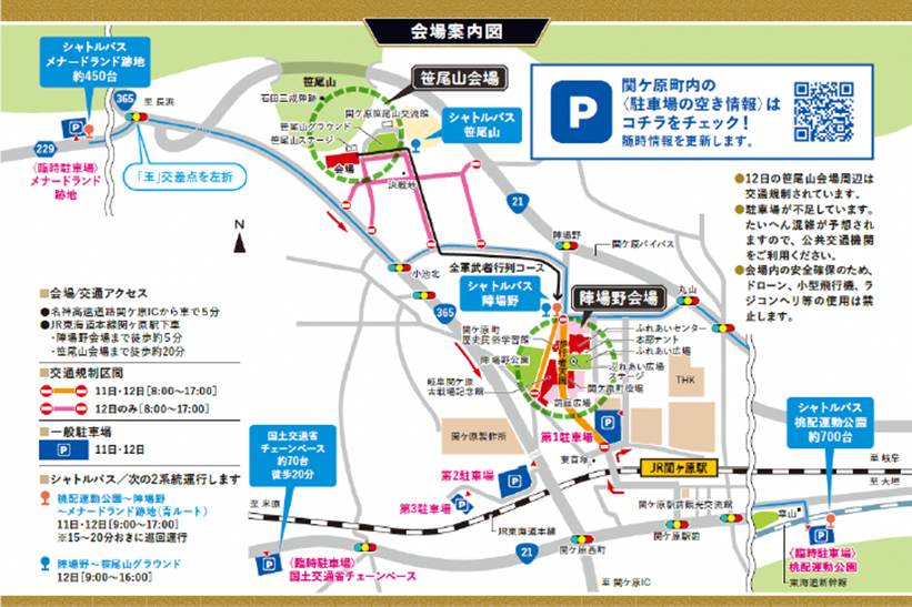 ※関ケ原町内の駐車場空き情報はこちらからご確認ください。[https://daisekigaharasai.pref.gifu.lg.jp/access/]