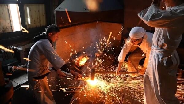 ◇概要:真っ赤になった玉鋼に大槌を打つ、火花が飛び散る迫力の「折り返し鍛錬」を目の前で実演します。大槌を打つ鍛冶体験や、小柄への刻銘体験もできます。(要実費参加費)