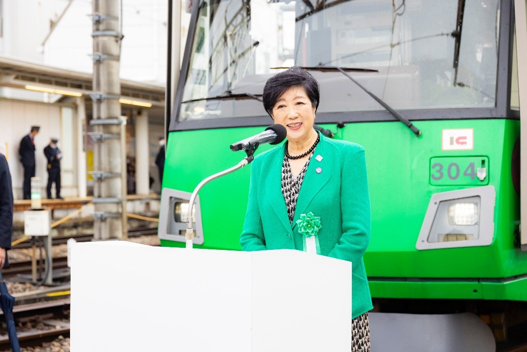 セレモニーで小池百合子東京都知事は、「電車内の緑化は内で初めての取り組みで、本物の“グリーン車”です」とコメント。