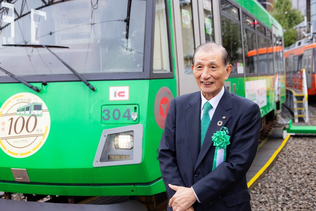 東急株式会社と東急電鉄株式会社は2025年11月9日(日)世田谷線開通100周年を記念し、東京都が推進する「東京グリーンビズ」と連携した特別企画列車「のるるんグリーンパーク」を一日限定で運行。上町車庫で記念セレモニーが行われ、東京都知事 小池百合子氏 や東急グループ代表 野本弘文氏らが出席しました。