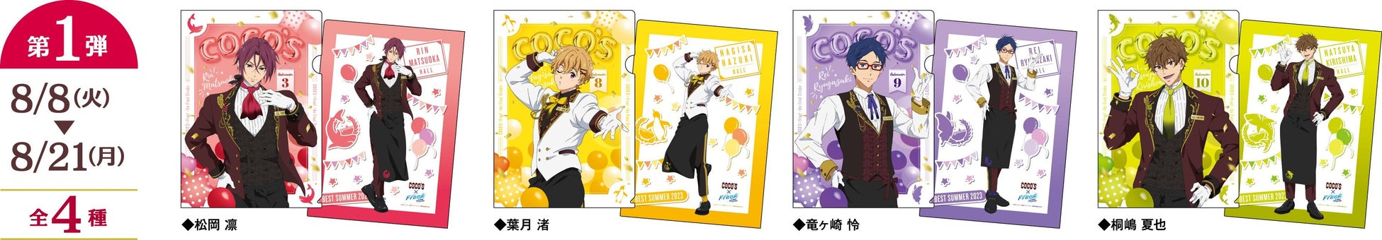 株式会社ココスジャパン(代表取締役社長:一木 直哉 本社:東京都港区)が全国に展開するファミリーレストラン「ココス」は、8月8日(火)から『劇場版 Free!–the Final Stroke–』とのコラボ企画「最高の夏-Memory-をキミと!キャンペーン」を開催します。