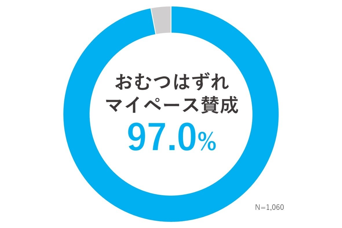 子育て当事者の97.0%が「おむつはずれは、マイペースで」という考え方に賛同。