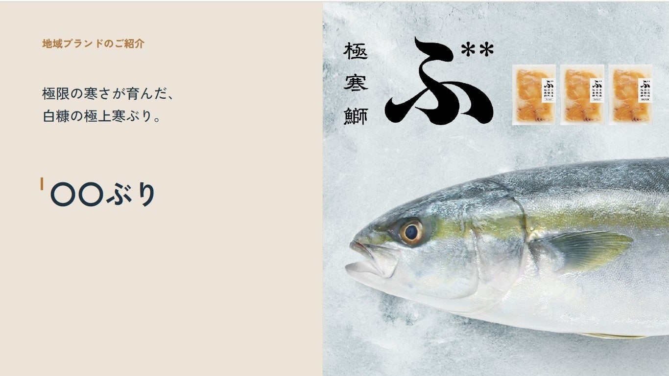 イミューが製造やブランディングを行っている「極寒ぶり®」「シラリカいくら」「本ししゃも」などの地域ブランドについて紹介をしました。地元の人は気付かなかったが、東京という外から見た時に気づく価値というものがあり、それを見える形にして届けていくブランディングという仕事について説明しました。