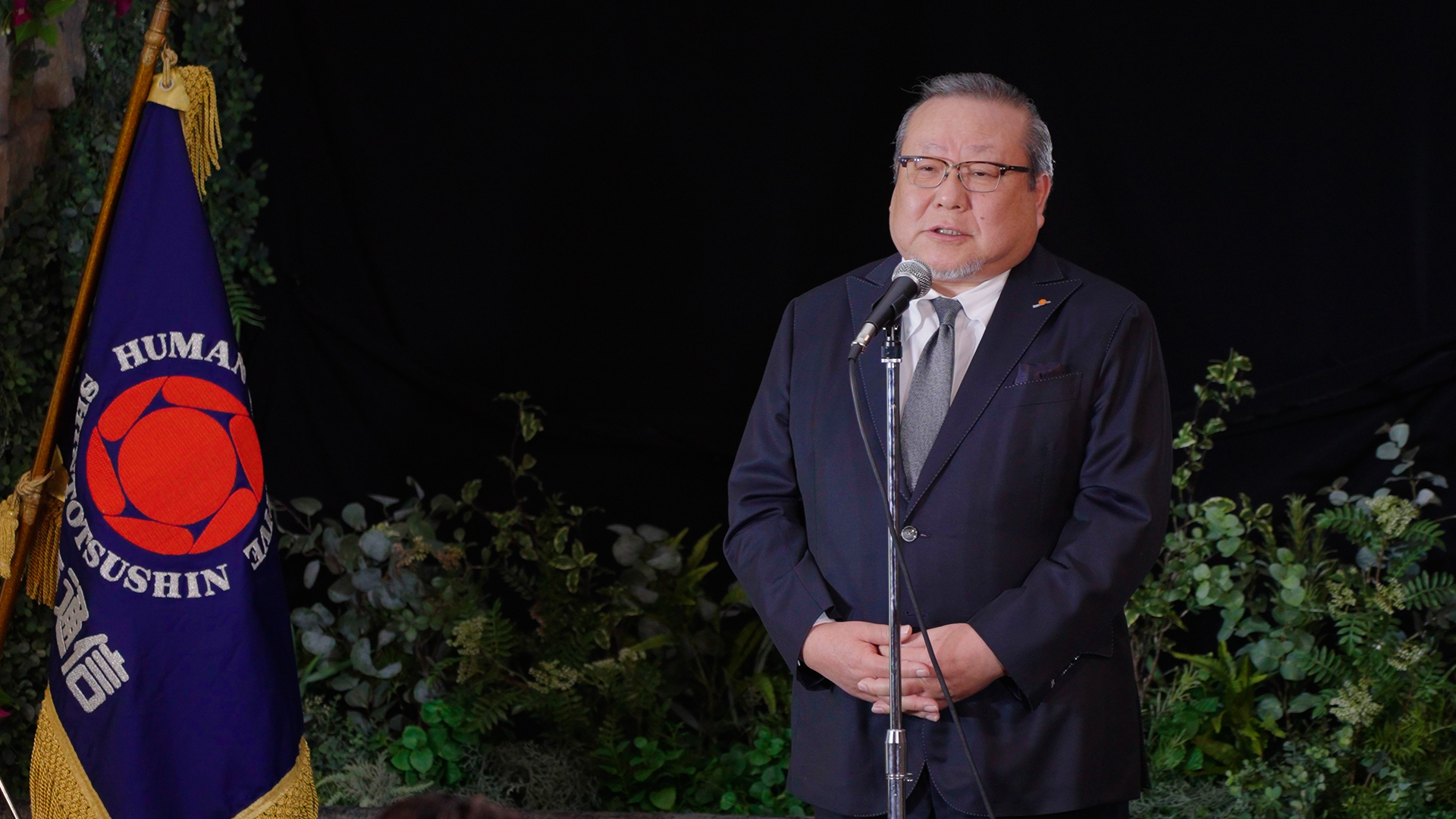 今日から皆さんは、家庭や学校という枠を離れ、会社を通じて社会と接していくことになります。プロとして会社を代表し、社会が求めるサービスを提供して対価をいただく。その社会人としての責任をしっかりと感じてください。これからはお金をもらいながら学ぶ立場になります。早く仕事を身につけ、戦力として大いに貢献してくれることを期待しています。