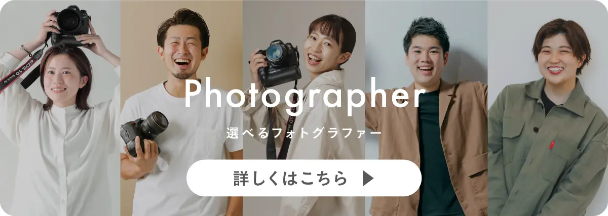 残したい写真の仕上がりや撮影のこだわりに合わせてフォトグラファーを選べる指名オプション。婚礼写真よりぐっとリーズナブルな価格でご案内しています。