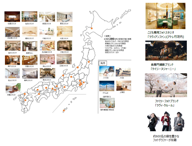 ・事業内容 写真事業(ラヴィ・ファクトリー)、結婚式事業(小さな結婚式)、通信事業(e-denpo)