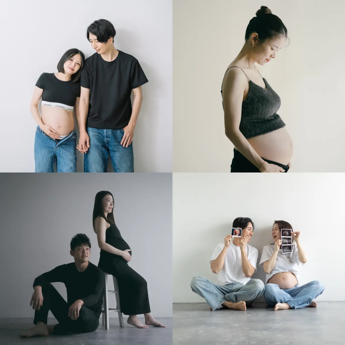 1.マタニティフォト寒さ・暑さの心配が少ない快適なスタジオ撮影はマタニティフォトにおすすめ。妊婦さまの体調に寄り添いながら、経験豊富なスタッフが撮影させていただきます。洗練された雰囲気ならモノトーンのマタニティコーデがおすすめ。残したいイメージに合わせてマタニティフォトをお楽しみください。 |