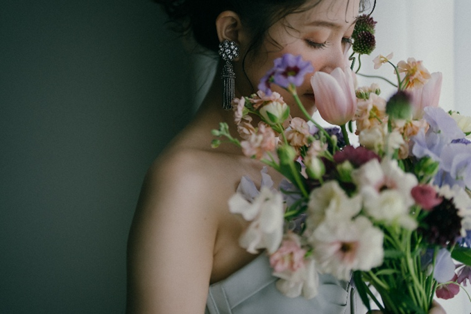 今回の移転に伴い新設されるフォトスタジオは、背景4面を備えた最新の撮影空間へと進化。なかでも和モダンなテイストのシノワズリを取り入れた背景は、華やかさと上品さを演出します。 あえて背景をシンプルに構成することで、衣裳とおふたりの表情をより魅力的に際立たせ、ライティング次第でシックな雰囲気から淡く柔らかなテイストまで多彩な表情を写し出します。
