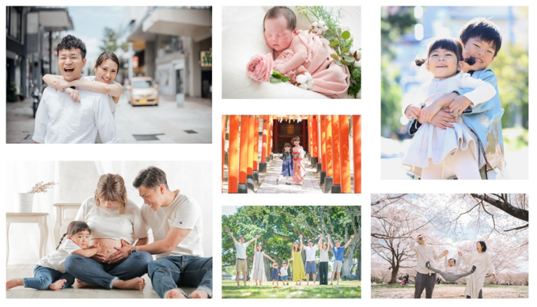 スタジオ撮影のほか、出張ロケーションフォトなど、ライフステージに合わせた幅広い撮影プランを提供しています。