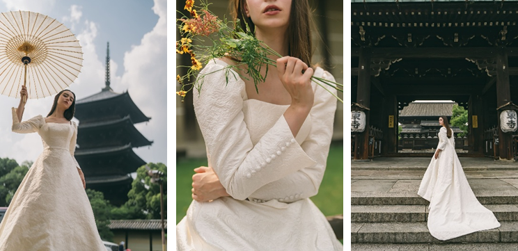 本プロジェクトは、広くブライダル事業を手掛けるレックのオリジナルドレスブランド「ラヴィ・ピュール」と、ウェディングフォトの現場を知り尽くしたラヴィ・ファクトリーのプロジェクトチームによる共同企画です。長年培ってきた幅広い衣装の専門知識に、フォトグラファー独自の視点を融合。レンズを通した際のシルエットの美しさと、自分らしい着こなしを両立させるため、細部のディテールまで徹底的にこだわり抜き、双方のプロフェッショナル同士のタッグだからこそ実現できる一着を完成させました。