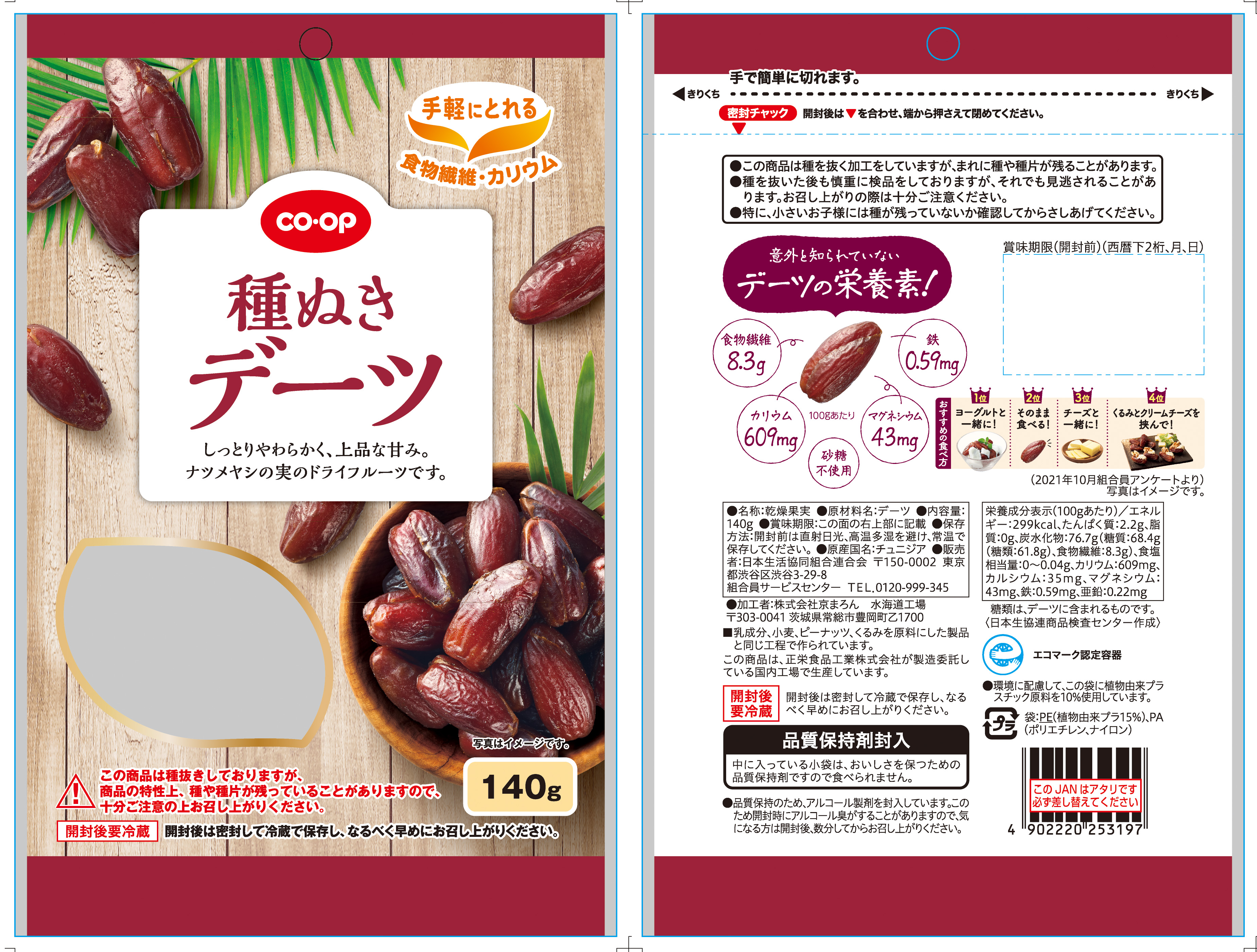 ・対象商品:CO・OP 種ぬきデーツ(食物繊維、カリウム)140g
