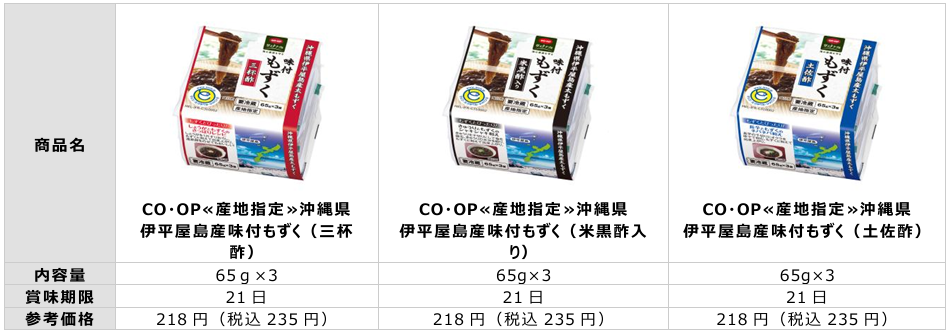 日本生活協同組合連合会(略称:日本生協連、代表理事会長:新井ちとせ)、コープデリ生活協同組合連合会(本部:埼玉県さいたま市、代表理事理事長:熊﨑伸、関東信越の6生協、以下コープデリ連合会)は、伊平屋村漁業協同組合の「オキナワモズク海面養殖」がMEL養殖認証*1を取得したことを受けて、発売中の「CO・OP 沖縄県伊平屋島産味付もずく米黒酢入り」をはじめとするもずく商品を、順次MELロゴマーク付きパッケージに切り替え、コープサステナブル*2“海の資源を守る”の商品として販売します。