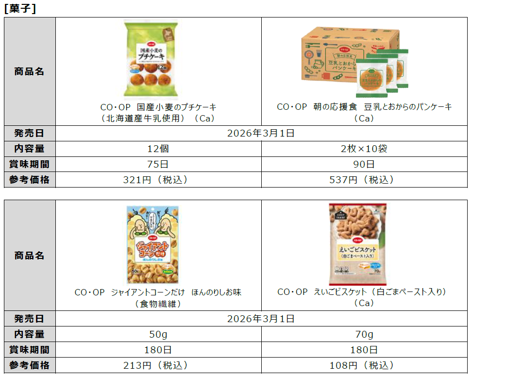 日本生活協同組合連合会(略称:日本生協連、代表理事会長:新井ちとせ)は、たんぱく質、カルシウム、鉄、食物繊維、その他ミネラル・ビタミン類や、野菜、大豆など、欲しい栄養を手軽にプラスできる「手軽にとれる」から、春の新商品11品を2026年3月1日より順次発売します。