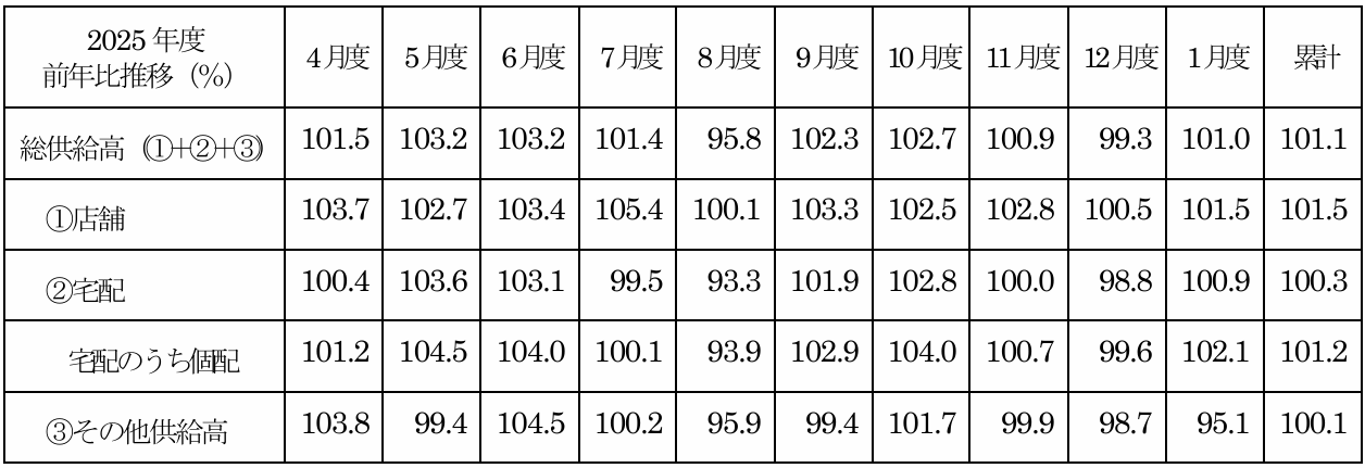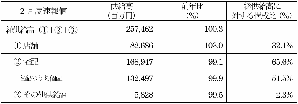 〇2月度の総供給高は、100.3%で前年超えとなりました。