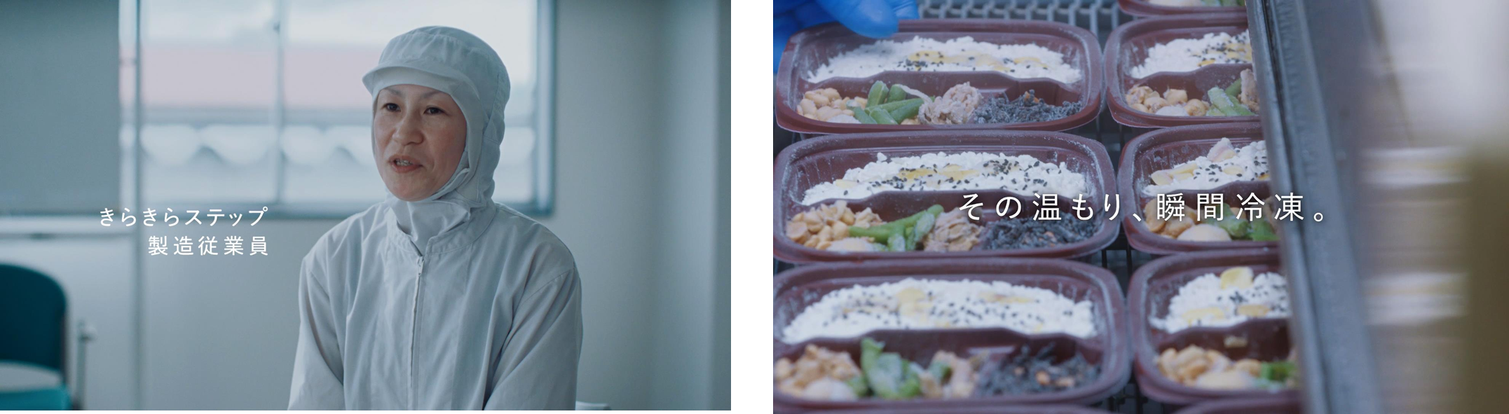 CMのワンカット(左・きらきらステップ篇、右:冷凍ワンプレート弁当篇)