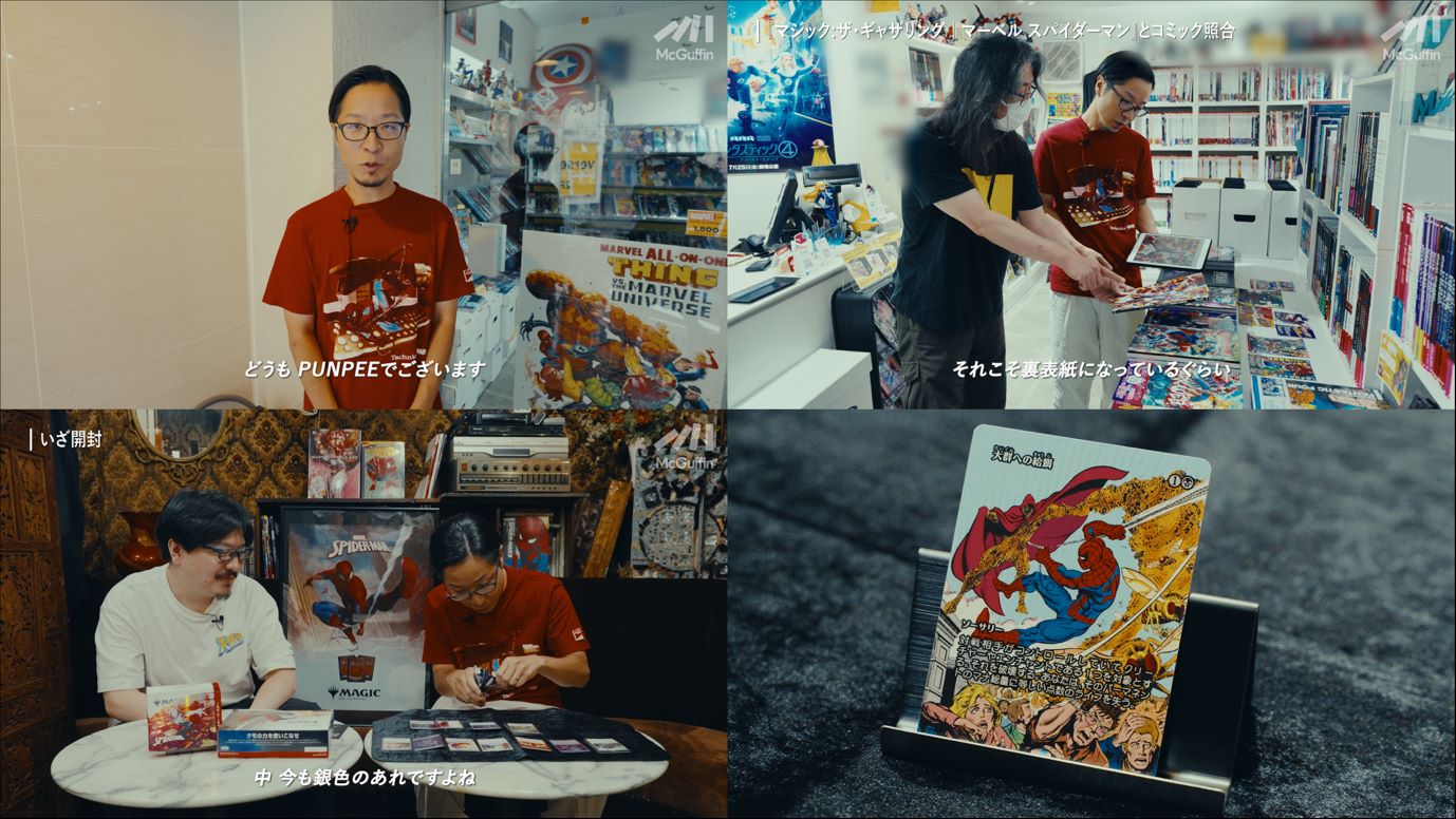 映像後半ではアメコミライターである傭兵ペンギン氏とのトークセッションへ。PUNPEE氏の私物コレクションの披露や、『マジック:ザ・ギャザリング | マーベル スパイダーマン』のカード開封を通じて、2つのカルチャーの楽しみ方を掘り下げます。