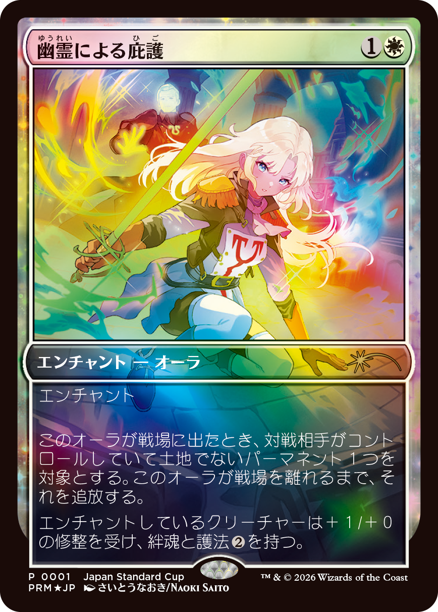 ・参加賞・賞品:参加賞としてプロモ版《幽霊による庇護》(日本語・FOIL仕様)がおくられます。