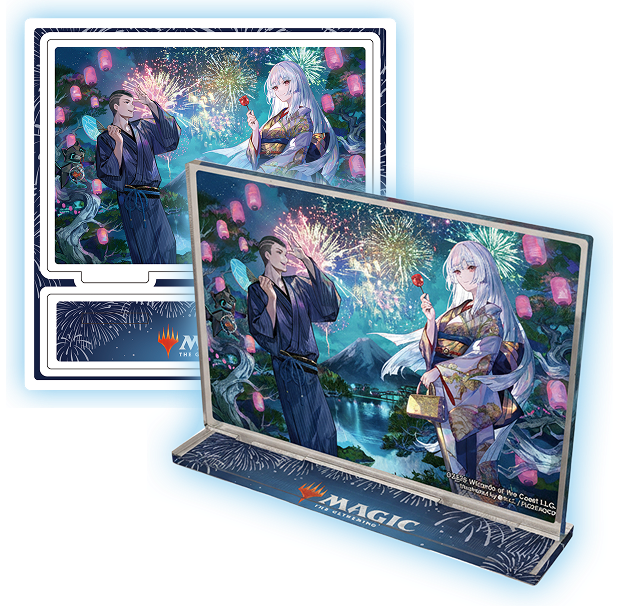 期間中にWPN店舗で2025年以降に発売されたセットのプレイ・ブースター1ボックスまたはコレクター・ブースター1ボックスをお買い上げ毎に、藤ちょこ先生(@ fuzichoco)描き下ろしのコマンダー・プロテクターをランダムで1個プレゼントします。また、コマンダー・プロテクター内にプロモカードが封入されている場合はその場で当選、「引換券」が封入されている場合は、藤ちょこ先生のアートワークによるスリーブ、アクリルスタンド、額付きアートのいずれかが後日発送で当たります。