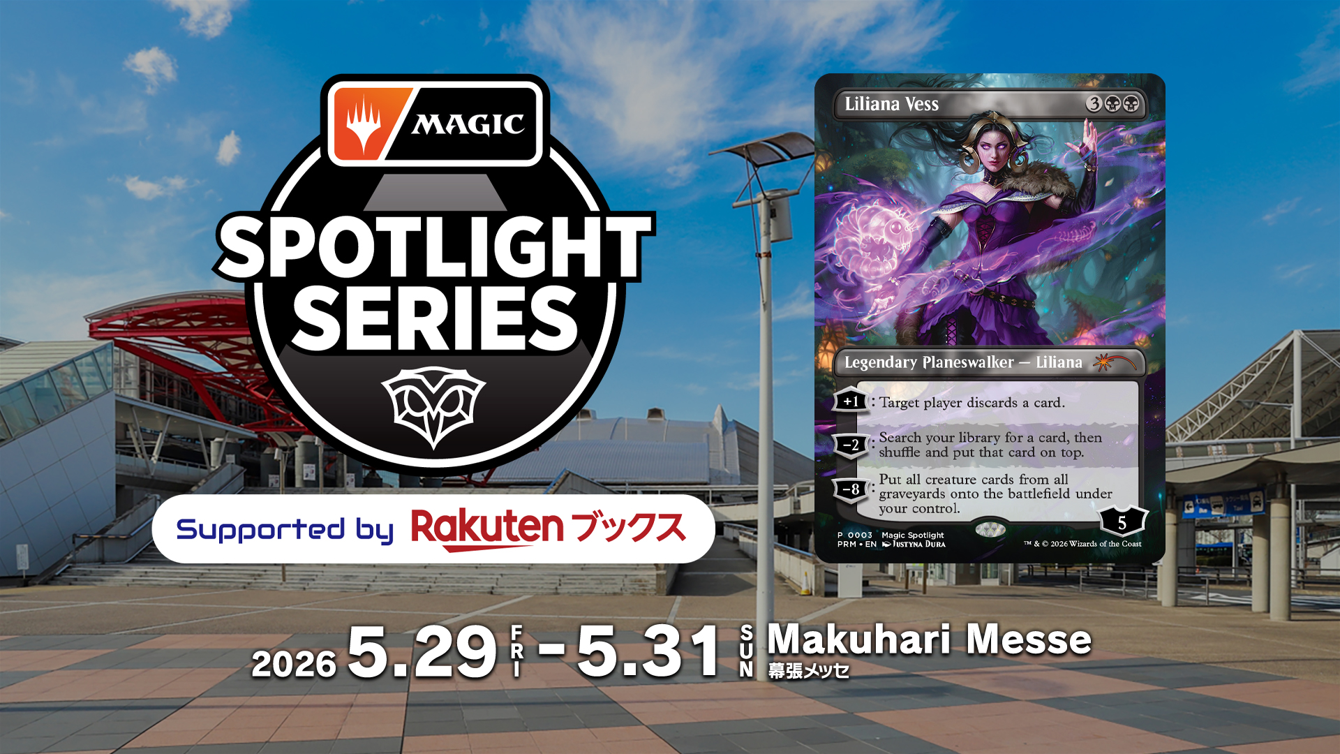 ハイレベルな競技の舞台、賞金が懸かった戦い、そして世界中のゲーマーが集まる場所。それらすべてを内包したエキサイティングな大型オープントーナメント・シリーズ「マジック:ザ・ギャザリング スポットライト・シリーズ」が再上陸します。本イベントは楽天グループ株式会社が運営するオンライン書店「楽天ブックス」が協賛します。