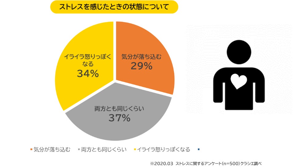 急激な社会変化を背景に、2023年以降もストレス関連需要への注目が続くことが予想されます。過度なストレスは身体的・心理的それぞれに、多様な症状を引き起こします。ストレスを感じると落ち込むタイプ、イライラして攻撃的になるタイプ、いずれも同等の割合で存在しストレスによる不調は多種多様である事が明らかです。