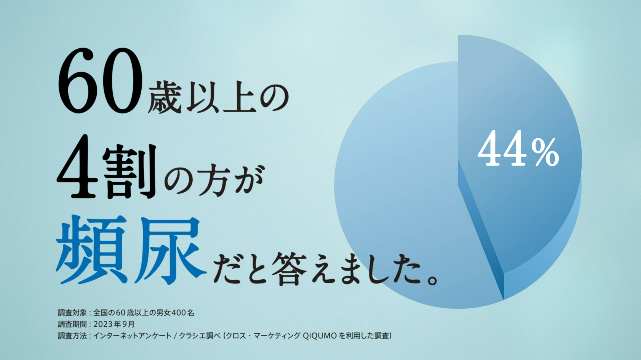 そこで今回は、尿トラブルに悩むシニア世代のQOL改善の一助となることを目的に、「いい尿の日」に合わせた施策を展開します。シニア世代の尿トラブルに関するお悩みを探るために「尿トラブルに関する意識調査」を実施したほか、公式YouTubeチャンネルでは啓発動画の公開や、薬局・ドラッグストアでのリーフレット配布を行います。また医師向けのオンラインセミナーを同日開催いたします。