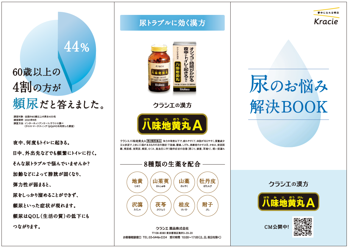 『八味地黄丸A』は、クラシエ薬品が提供する頻尿・夜間尿を改善するブランドです。高齢化が進む中、近年需要が高まっています。