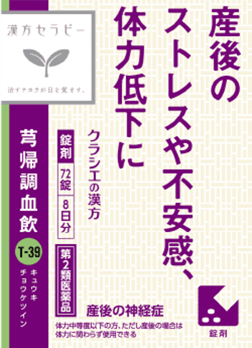 効能:体力中等度以下のものの次の諸症。ただし産後の場合は体力に関わらず使用できる。:月経不順、産後の神経症・体力低下