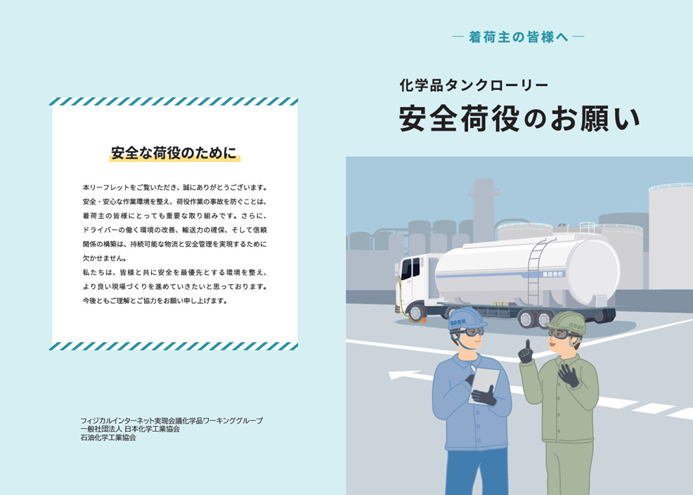 経済産業省・国土交通省が主導する「フィジカルインターネット実現会議」内に設置されている「化学品ワーキンググループ」(座長:流通経済大学 矢野裕児教授)は、2025 年 4 月施行の改正物流関連法および 2026 年 1 月施行の中小受託取引適正化法を踏まえ、化学品物流における「トラック附帯作業の適正化」および「タンクローリー荷役作業の安全向上」に向けた取り組みを推進しており、このたび、関係者の理解促進のためのリーフレット・パンフレットを作成しました。