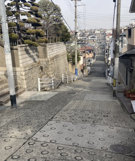 ・山陽須磨駅からほど近く、住宅地につながる細い坂です。