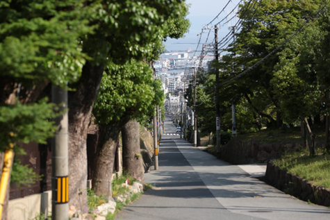 ・阪急王子公園駅から神戸高校の正門へつながる坂です。神戸高校は作家・村上春樹さんの母校であり、この坂はエッセイ『辺境・近境』にも登場します。