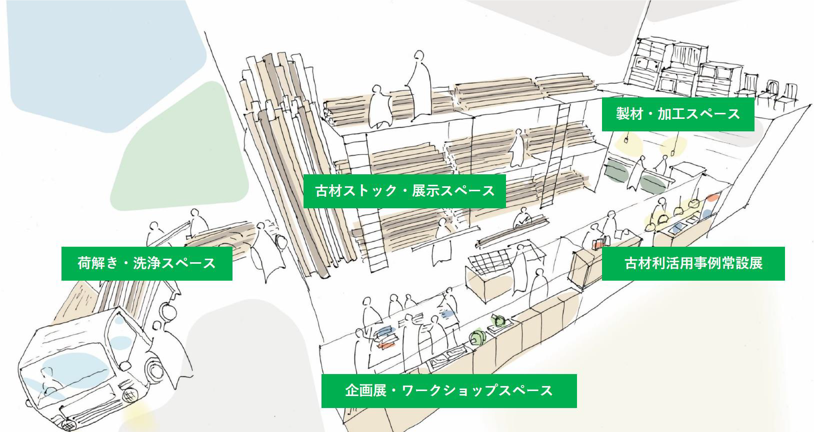 ◇機能:(運営事業者)空き家解体時などに出る古材の保管や製材ができる
