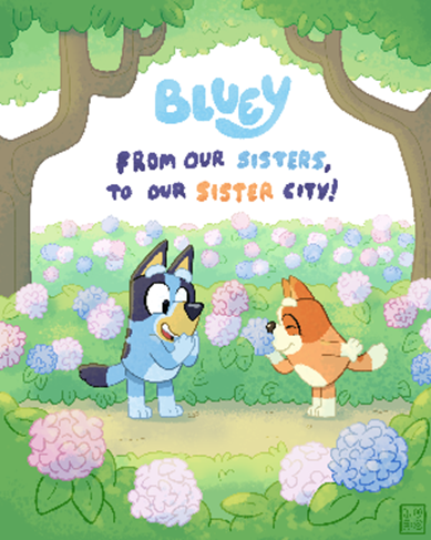 イラストは、姉妹都市友好の証として、ブルーイの制作会社Ludo Studioが神戸市民の花・あじさいをモチーフとして書き下ろした特別なイラストです。