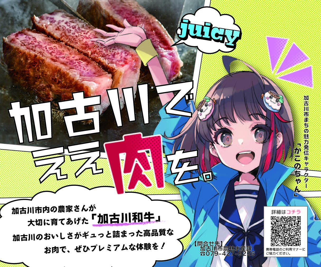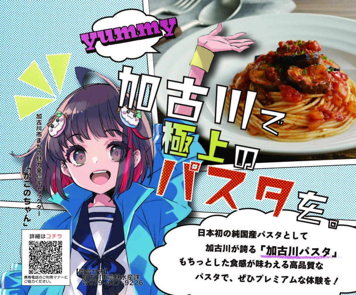 デザインには、加古川市まちの魅力発信キャラクター「かこのちゃん」を採用し、「加古川和牛」や「加古川パスタ」など、市を代表する特産品を紹介。阪神沿線を利用する多くの方に、加古川の“おいしい魅力”を身近に感じていただける内容となっています。