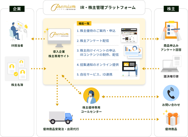 「プレミアム優待倶楽部」は、上場企業の株主の方を対象に、導入企業が発行する株優待ポイントを使って、お好きな商品を自由に選べる国内最大級の株主管理・株主優待デジタル化サービスです。