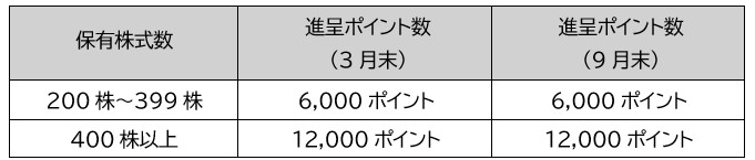 【進呈条件】2026年3月末日現在の当社株主名簿に記載または記録された2単元(200株)以上保有の株主様を対象に株主優待制度を開始します。以後、毎年3月末日および9月末日現在の当社株主名簿に記載または記録された2単元(200株)以上保有の株主様が対象となります。