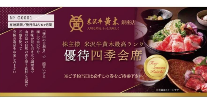 ■米沢牛黄木 銀座店 黄木最高ランク 優待四季会席 ペア食事券