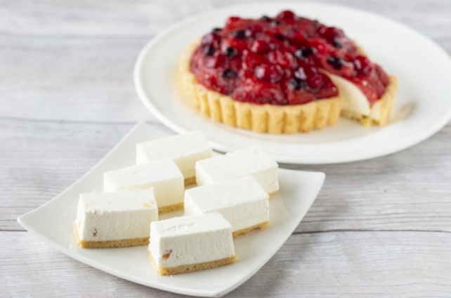 北海道産クリームチーズを使用し甘酸っぱいベリーを乗せたタルトと同じく北海道産クリームチーズを使用しアクセントにオレンジピールを加えたチーズケーキのセット。