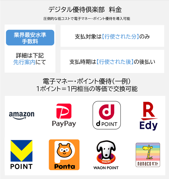 業界最安水準の手数料で導入可能 電子マネー・ポイント株主優待サービス「デジタル優待倶楽部」