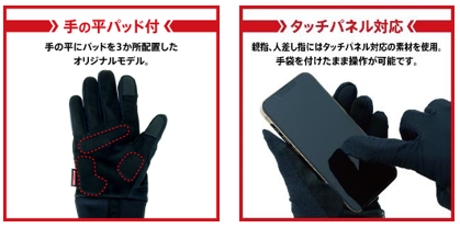 ・装着したままスマートフォンなどを操作できるタッチパネル対応